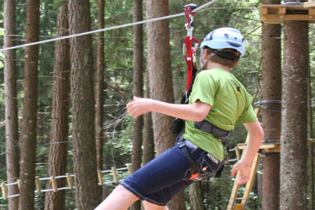 Il percorso verde e il verde plus sono adatti ai bambini e hanno un'altezza massima di 3 metri da terra: arrampicate su scale a pioli, attraversamenti di tronchetti, voli in teleferica. Il percorso blu arriva a 6 metri di altezza con ponti tibetani, liana speed mentre il percorso rosso è adatto agli adulti poiché arriva a 14 metri di altezza con scala pappagallo, rete verticale e liane di diversa difficoltà. Inoltre una piattaforma a 20 metri di altezza regala una vista mozzafiato sulle Tre Cime di Lavaredo.