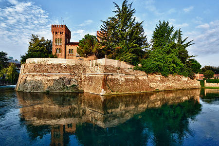 Sorta in età romana, Treviso diventa una città murata in epoca medievale. La crescita economica e demografica che caratterizza il pieno medioevo si traduce qui in un ampliamento del centro e nella sua fortificazione, funzionale alla protezione della città e al tempo stesso simbolo del suo dominio sul territorio circostante.