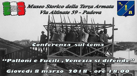 Il Museo Storico della Terza Armata di Padova ospita la conferenza "Palloni e fucili, Venezia si difende". Relatore: Pietro Lando.