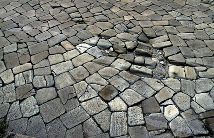 Lastricato stradale in basoli trachitici presso piazza Cardinal Costantini.