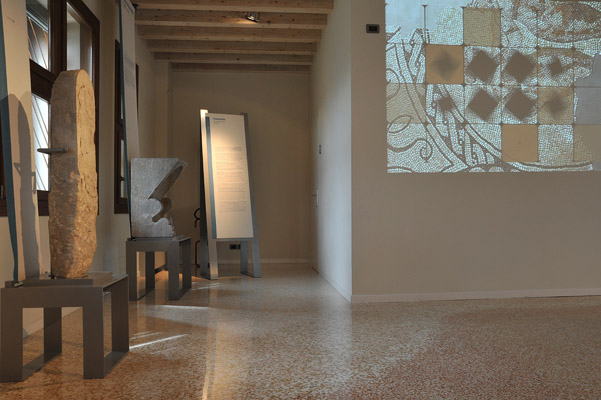 Altino, Museo Archeologico Nazionale Sala I (particolare della parete sud con il totem della Via Annia) Altino, Museo Archeologico Nazionale © Soprintendenza per i Beni Archeologici del Veneto