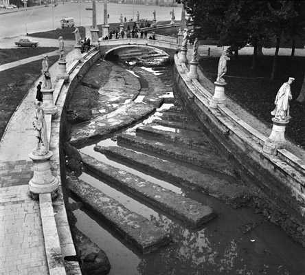 Resti del teatro romano di epoca augustea, emersi nel corso di lavori di prosciugamento della canaletta che circonda l'Isola Memmia in Prato della Valle. (foto Musei Civici di Padova)